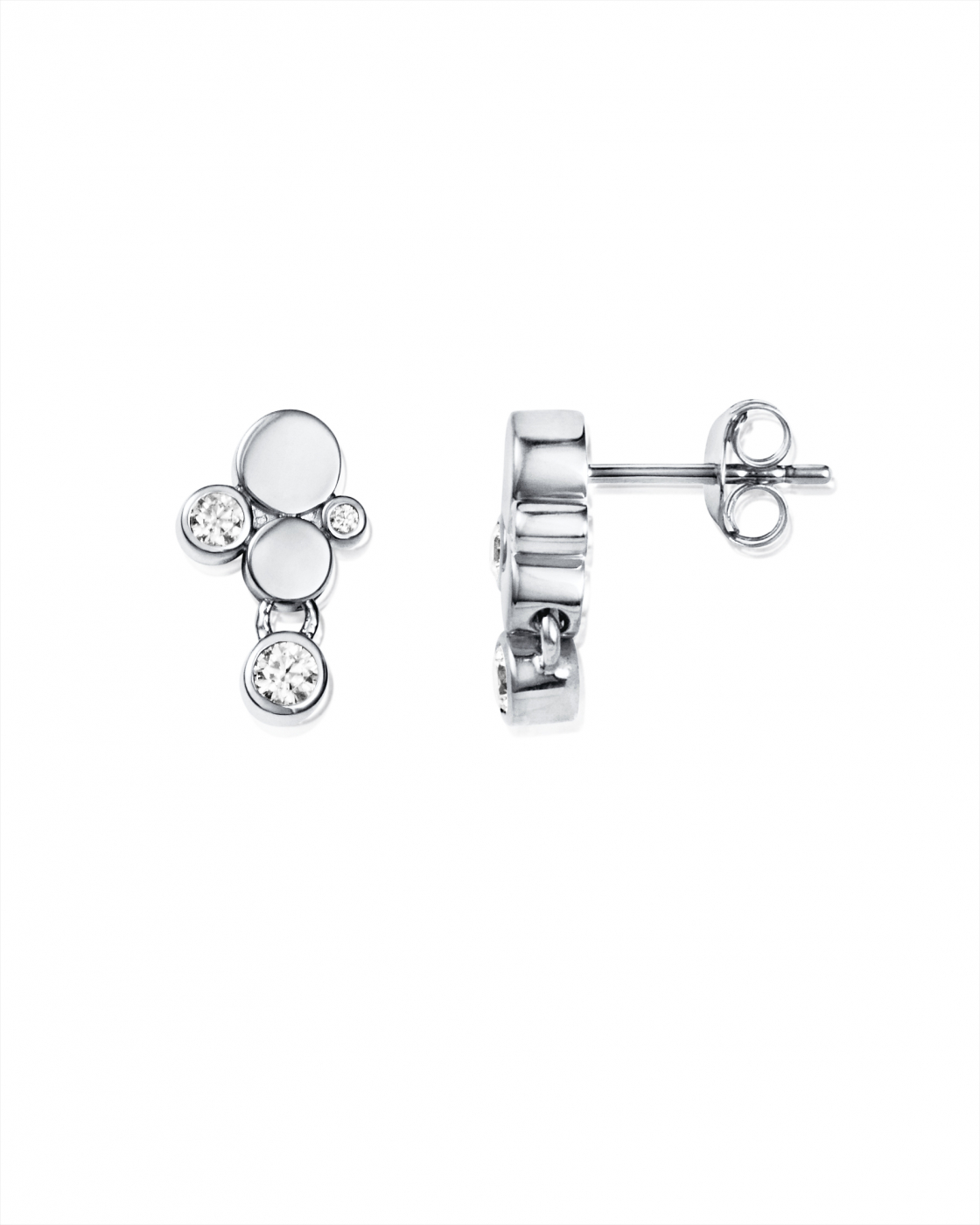 Örhängen i återvunnet 925 sterlingsilver formade som bubblor med tre vita topaser varav två fasta och en hängande. Ett smycke för alla tillfällen värda att fira och gnistra i kapp med champagnebubblorna. Little Champagne finns även som halsband, och ring.