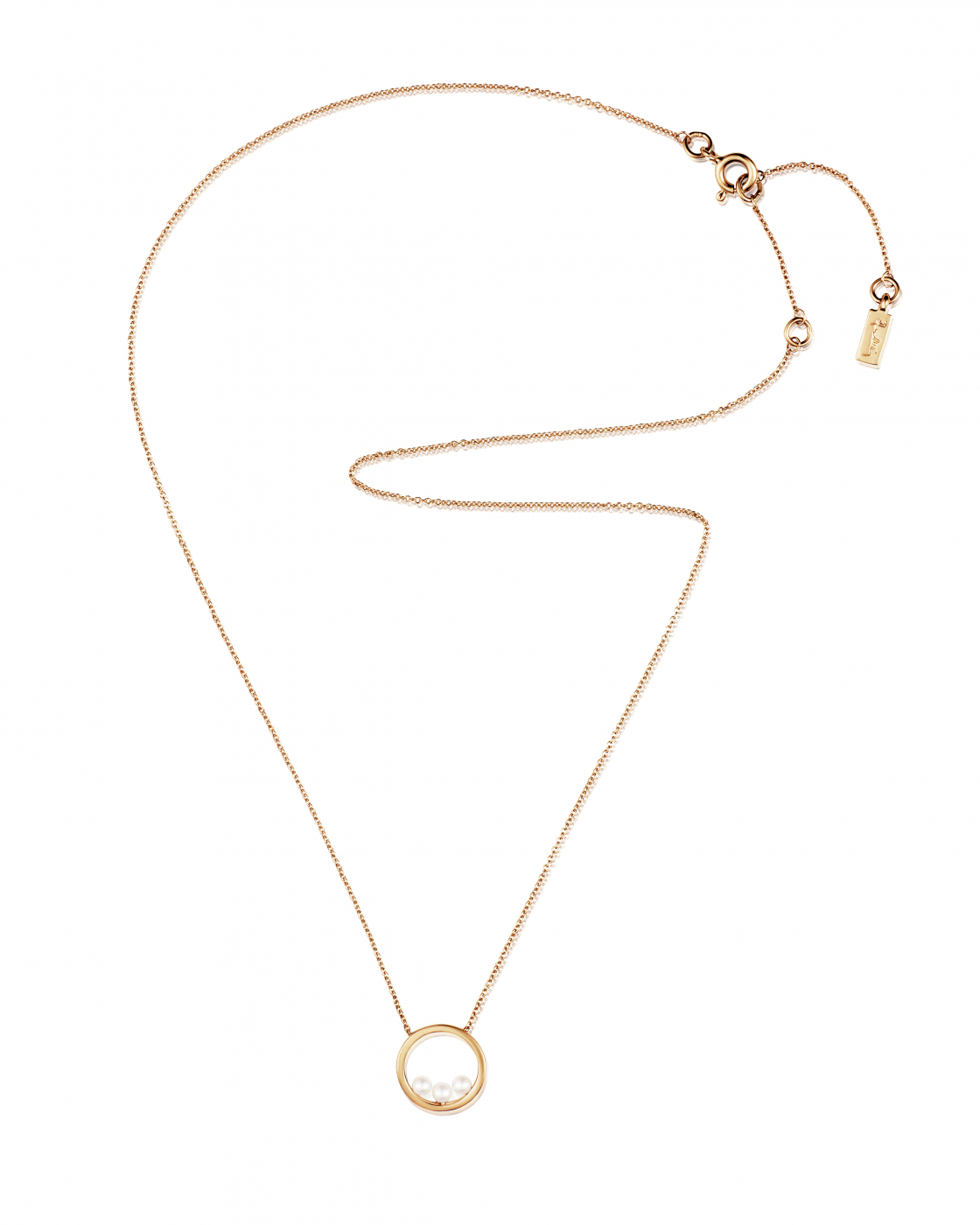 Halsband i återvunnet 18k guld med tre sötvattenpärlor i rad.