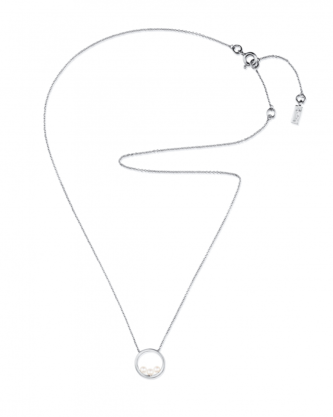 Halsband i återvunnet sterlingsilver med tre sötvattenpärlor i rad.