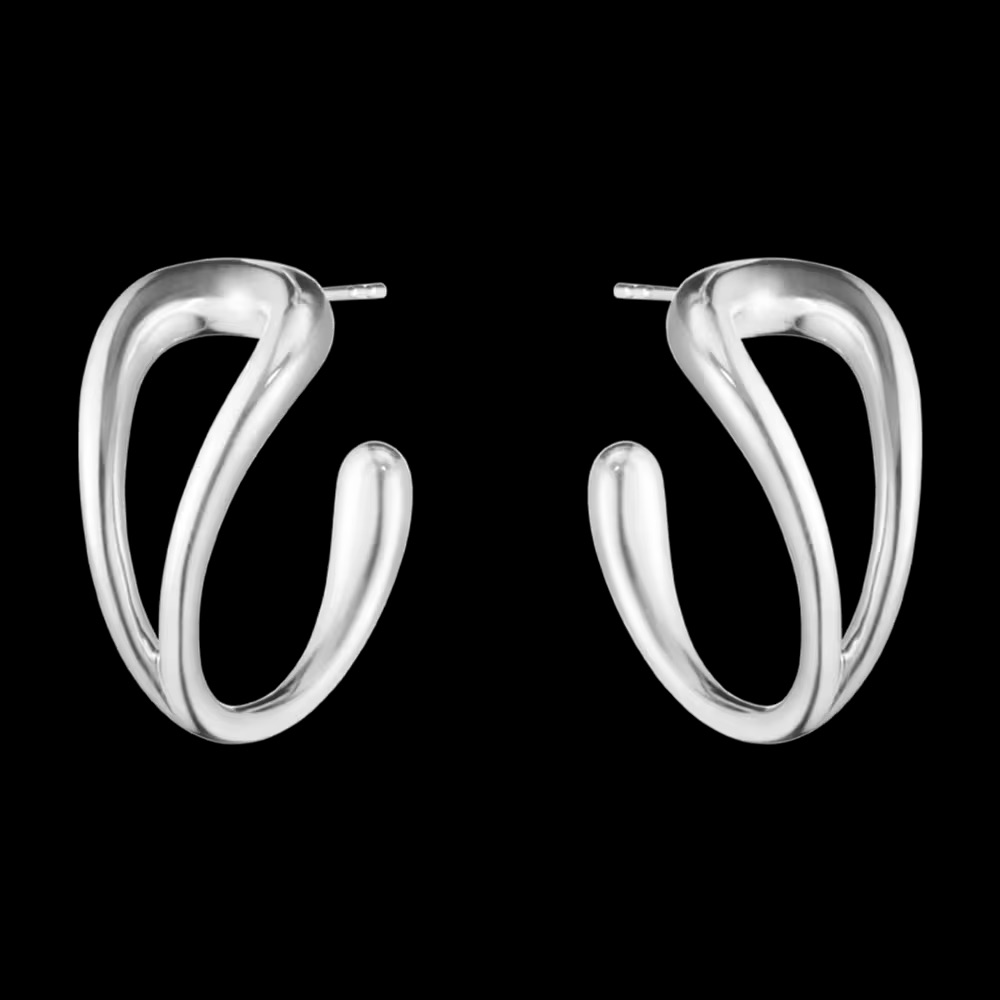 Smyckesdesignern Jacqueline Rabun inspireras i Mercy-kollektionen av tidens flöde och de oförutsägbara vändningar som formar en människas liv. En symbolik som uttrycks i dessa hoops i silver, vars enkla linjer mjukt följer örats kontur uppåt från örsnibben.