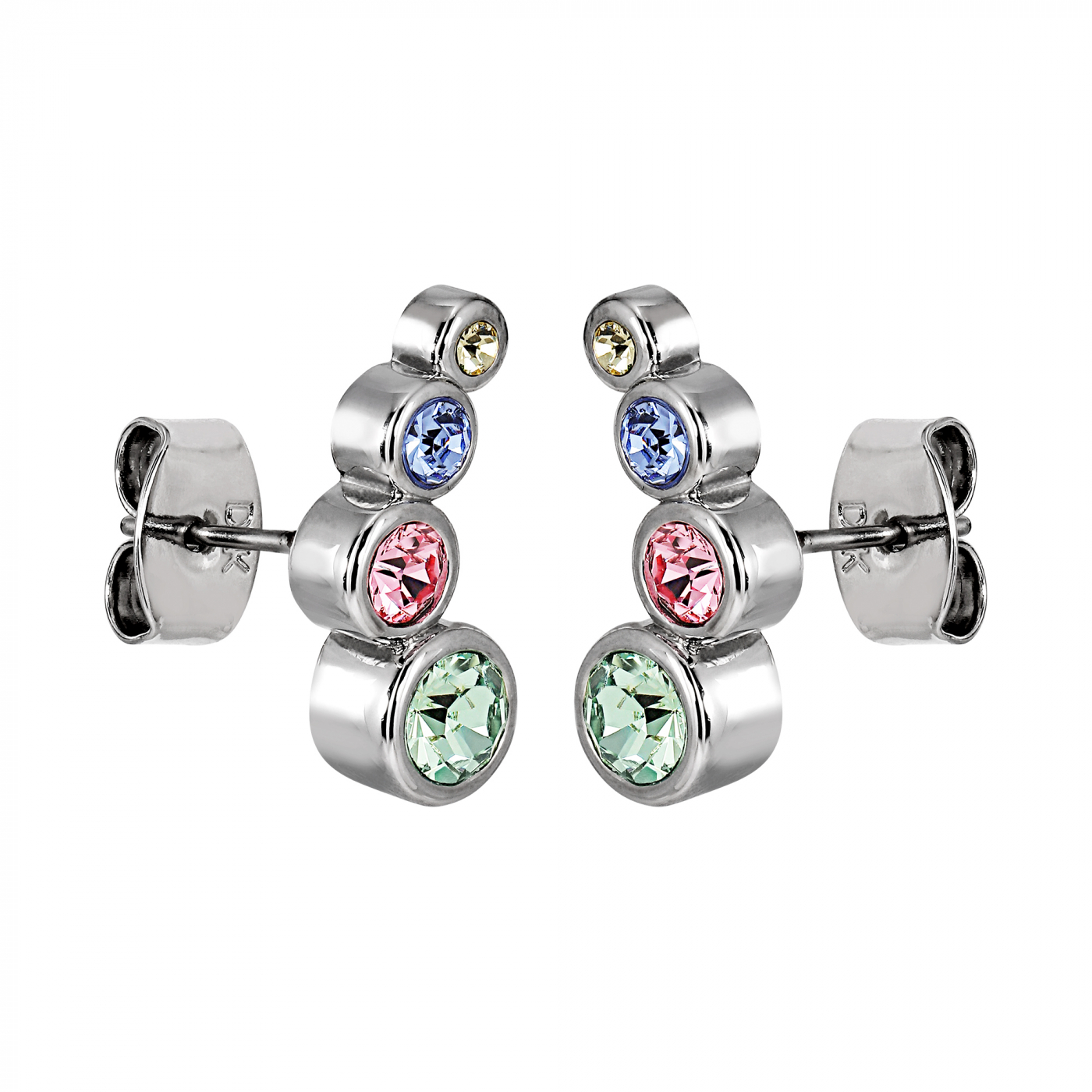 AGNES-är ett litet örhänge som med sina fyra små glittrande kristaller bildar formen av en vinge. Smycket, har en slitstark IP plätering, visas här i en guldton-prydd med pastellfärgade stenar. Längd cirka 10 mm. Allergitestat. Fritt från kadmium, nickel och bly. Dansk design.