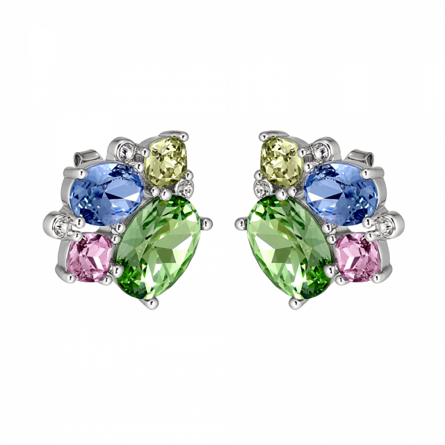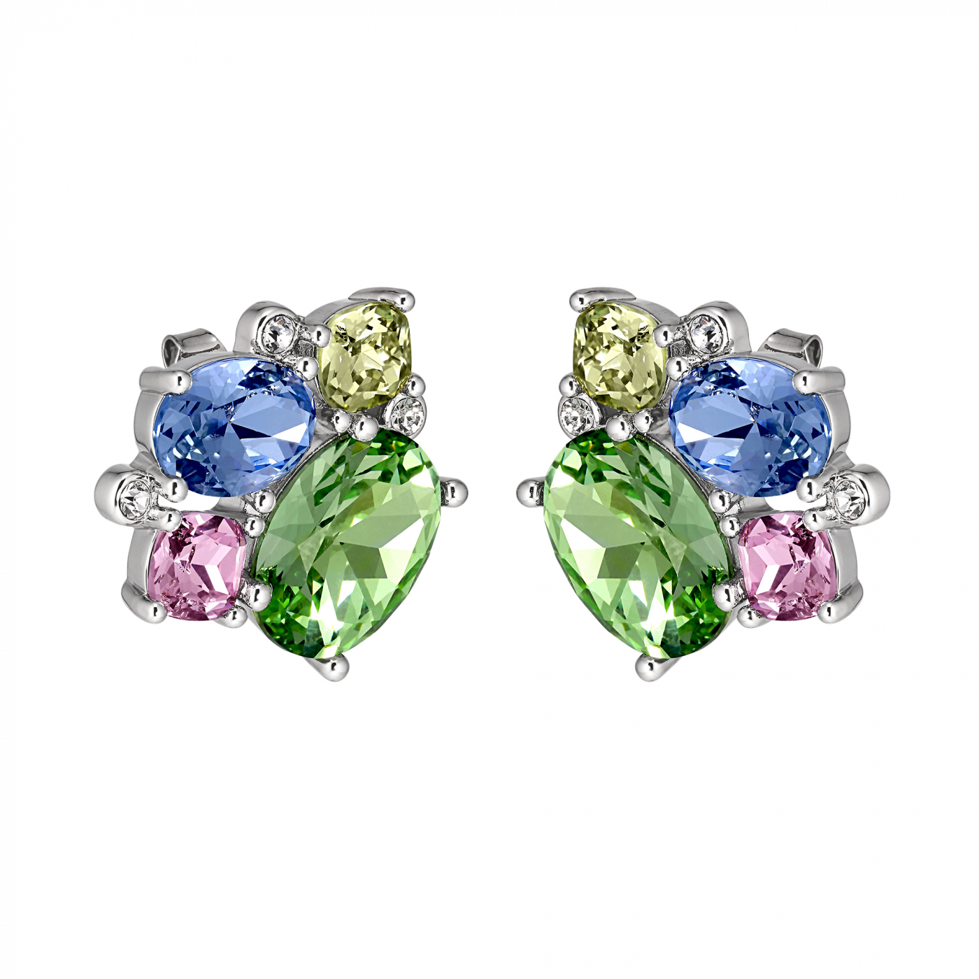 EMMA-är ett lite större mycket dekorativt örhänge med en 1950-tals känsla. Tätt besatt med större och mindre kristallstenar i olika storlekar, ca 14 mm i diameter. Smycket är designat i polerad mässing med en hållbar IP plätering. Stift i kirurgiskt stål. Här visas det i en silvertonad finish med pastellfärgade kristaller. Dansk design. Fritt från kadmium, nickel och bly.