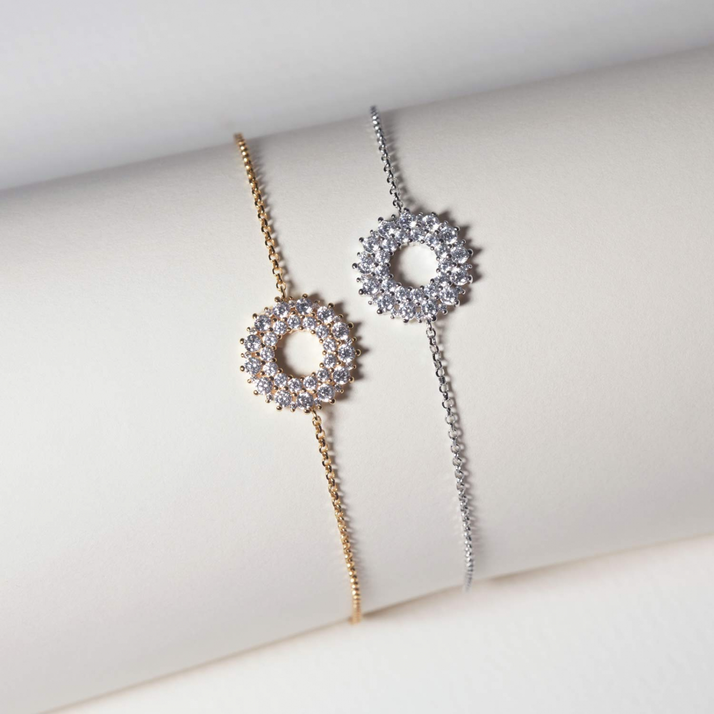 Armband av 18k guldpläterad 925 Sterling Silver med polerad yta och handplacerade facettslipade vita zirkoner.